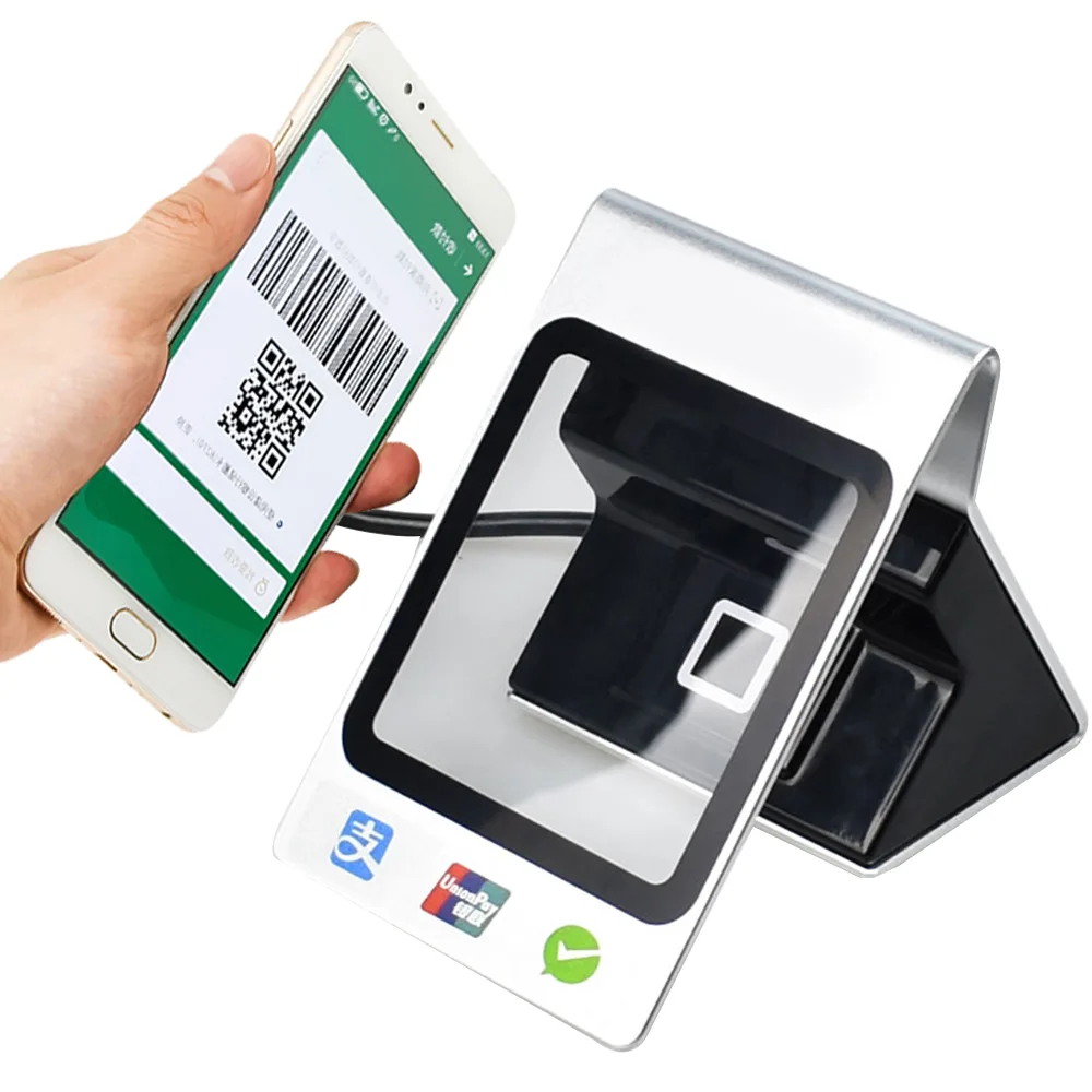 The scanner boasts a large scan window, ideal for scanning smartphone screen codes. With its ergonomic scanning angle of 45°, it ensures comfortable and efficient scanning. It comes with a USB cable for easy connection to your PC or POS system.
